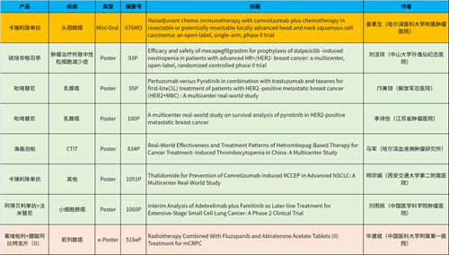 在头颈肿瘤、乳腺癌、肺癌、前列腺癌等多个疾病领域,卡瑞利珠单抗、阿得贝利单抗、吡咯替尼、氟唑帕利、法米替尼、醋酸阿比特龙片(II)等抗肿瘤新药相关研究一共入选了1项简短口头报告、4项壁报展示和1项电子壁报,彰显了DB真人医药强劲的研发实力。